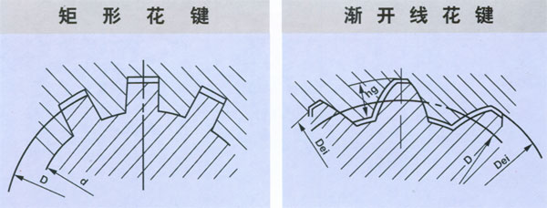 | 回轉直徑 φK | 矩形花鍵尺寸 齒數-大徑×小徑×寬度 | 外花鍵 | 內花鍵 | ||||||||